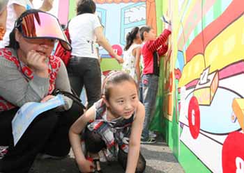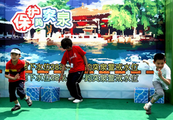富有濟(jì)南特色的環(huán)保游戲 家長和孩子一起觀看環(huán)?ㄍㄆ